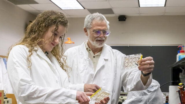 You’ll start with a foundation of core biology courses covering organismal biology, genetics, molecular biology, physiology, ecology and evolution. As you progress, you’ll have the flexibility to specialize through upper-level courses and faculty-mentored research, allowing you to shape your biology degree around your career goals.