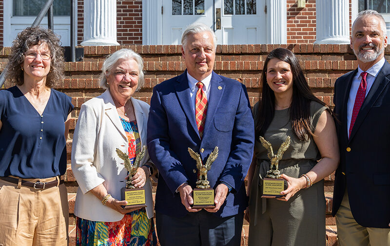 Dr. Bushman and Micaela Weaver holding Young Alumna Award