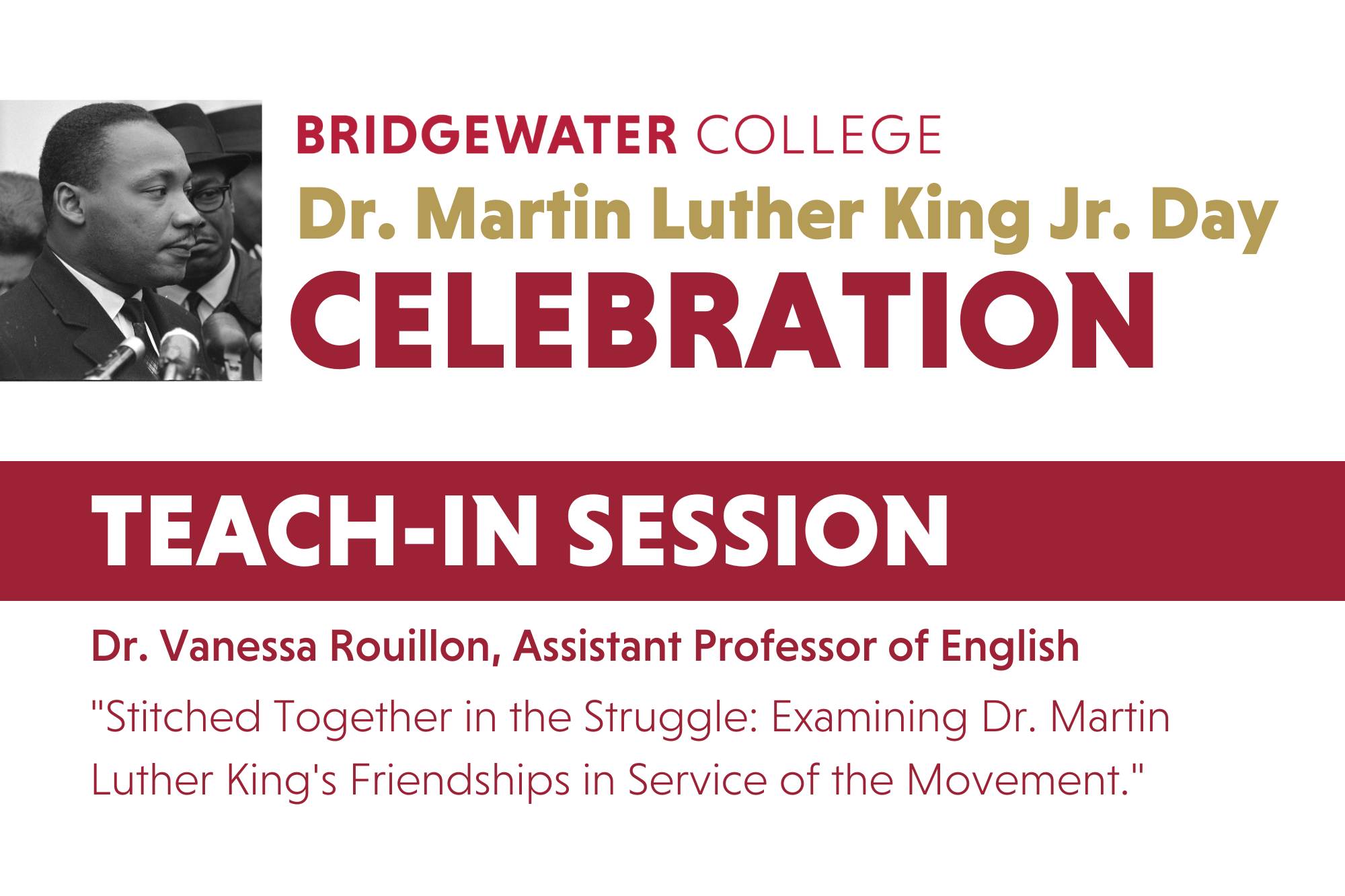 In her 2026 Teach-In, Dr. Vanessa Rouillon will discuss Dr. King's work and collaborations through the lens of his friendships with some known American figures such as James Baldwin, John Lewis, Medgar Evers, and Rosa Parks.