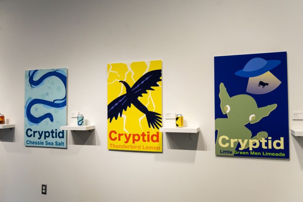 “In this project, I created advertising posters and soda can labels for a fictional soda brand company, Cryptid Soda Co. I designed the cryptid soda brand to feature tongue-in-cheek combinations and unique graphical illustrations. My work combines illustration and branding to shape a narrative about each soda flavor,” Phillips said.